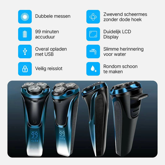 Scheerapparaat voor mannen Pro: Elektrisch nat en droog scheren, incl. GRATIS reisetui & 3 vervangende scheerkoppen